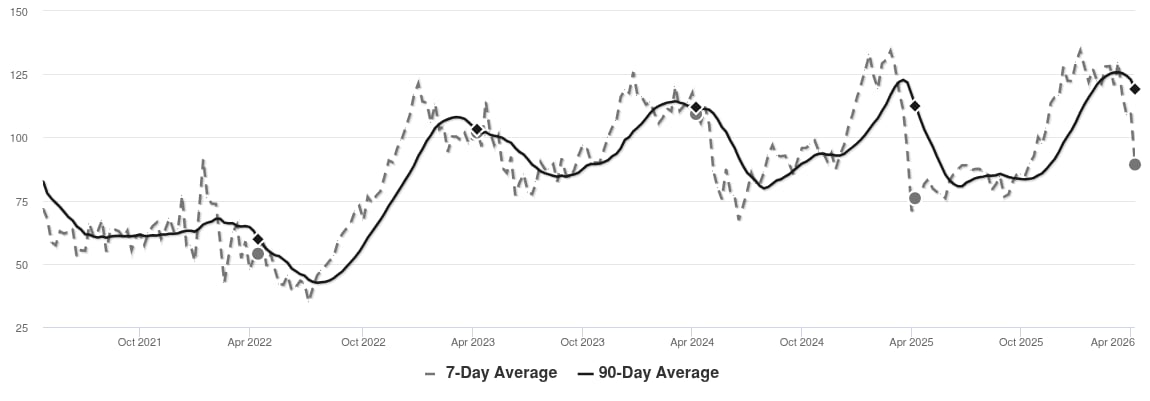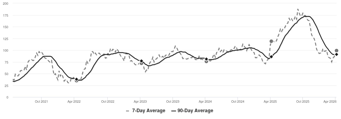 Home sales continue to outstrip supply and the Market Action Index has been moving higher for several weeks. This is a Seller’s market so watch for upward pricing pressure in the near future if the trend continues.
