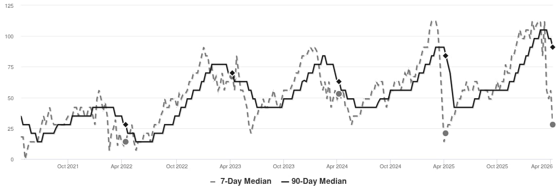 This week the median list price for Battle Ground, WA 98604 is $459,900 with the market action index hovering around 27.