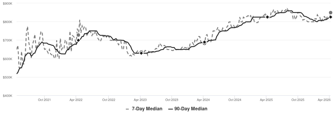 | Median Price of New Listings | $810,068 |