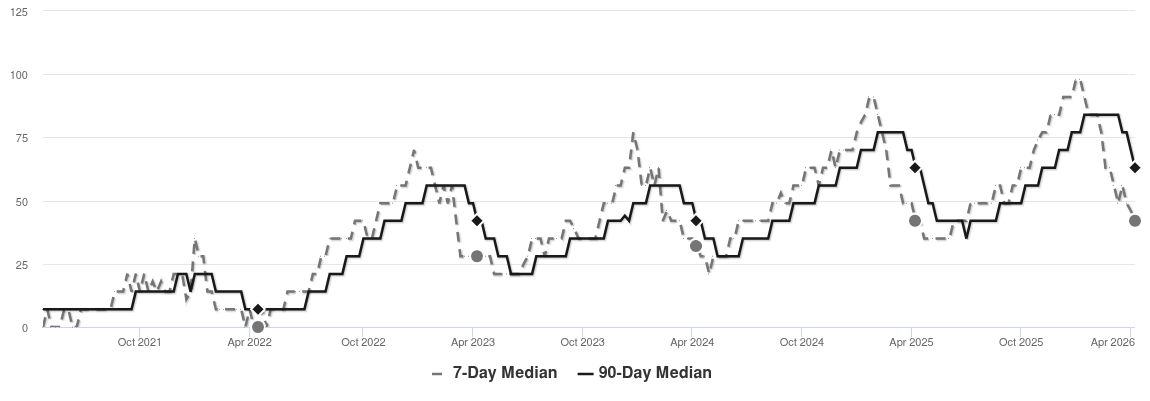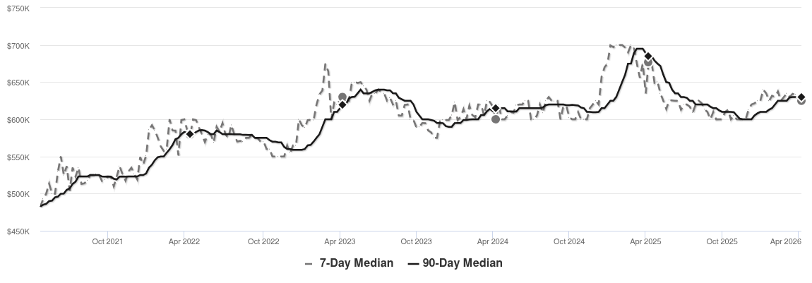 This week the median list price for Vancouver, WA is $625,000 with the market action index hovering around 44.