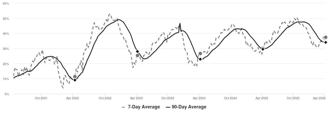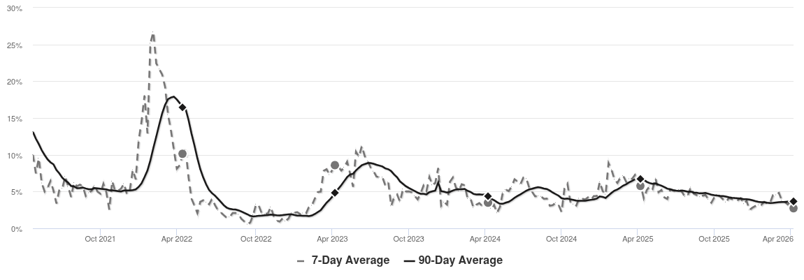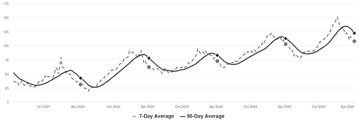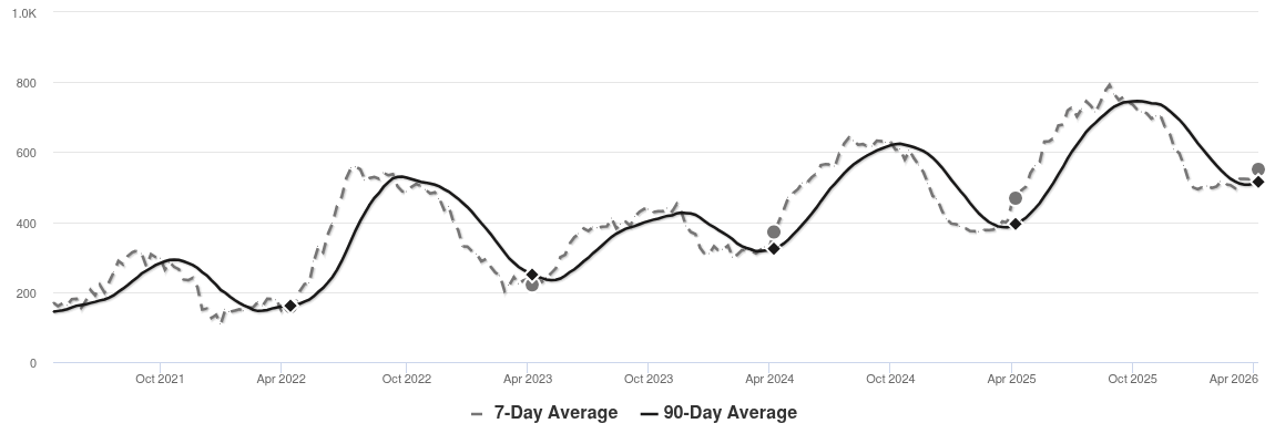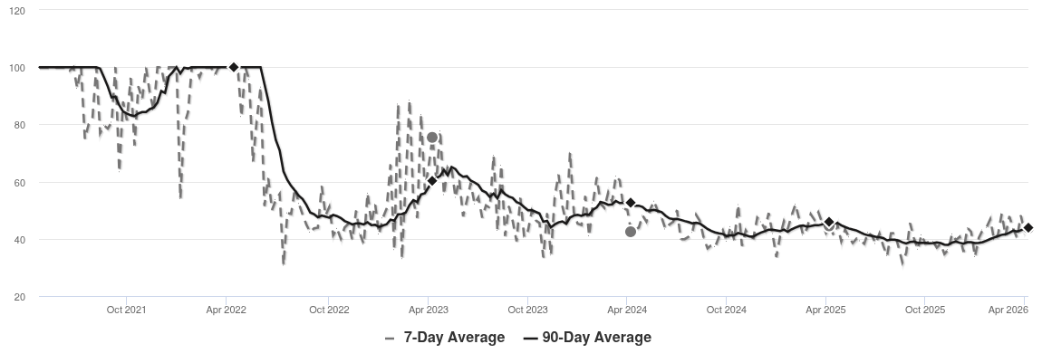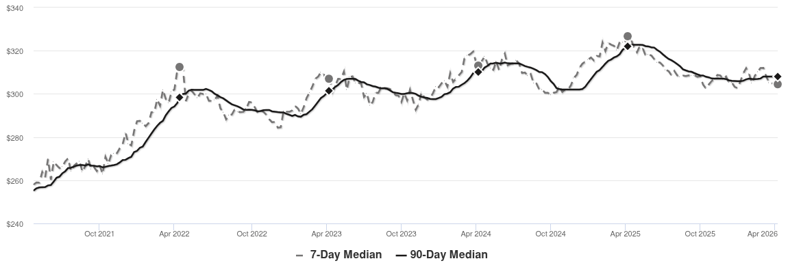 Prices in this zip code hit another all time high this week. You can see that prices continue to march higher. Look for a persistent downtrend in the Market Action Index into the Buyer’s zone as a leading indicator of the price strength finally abating.