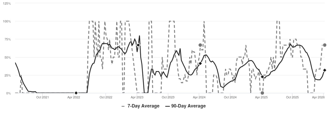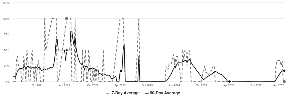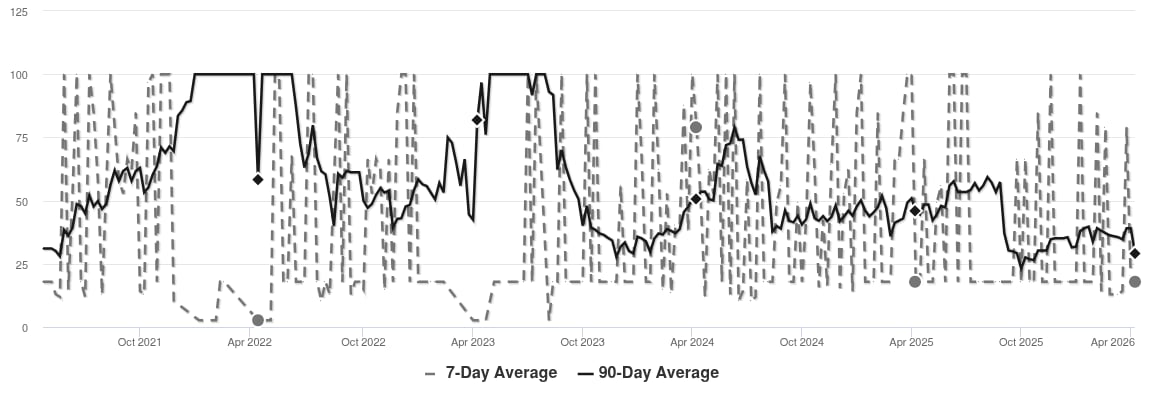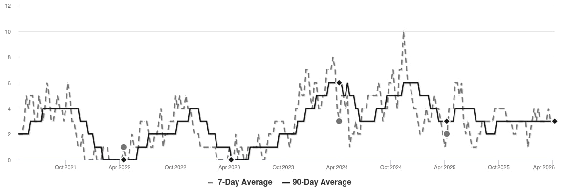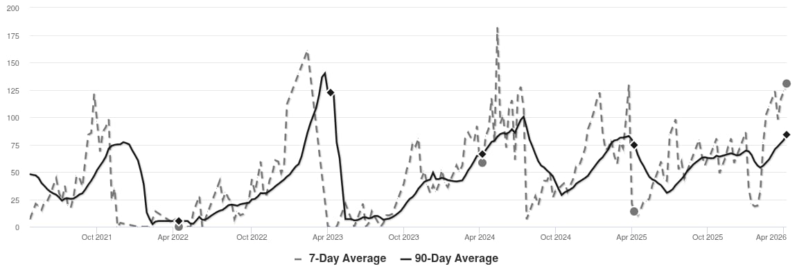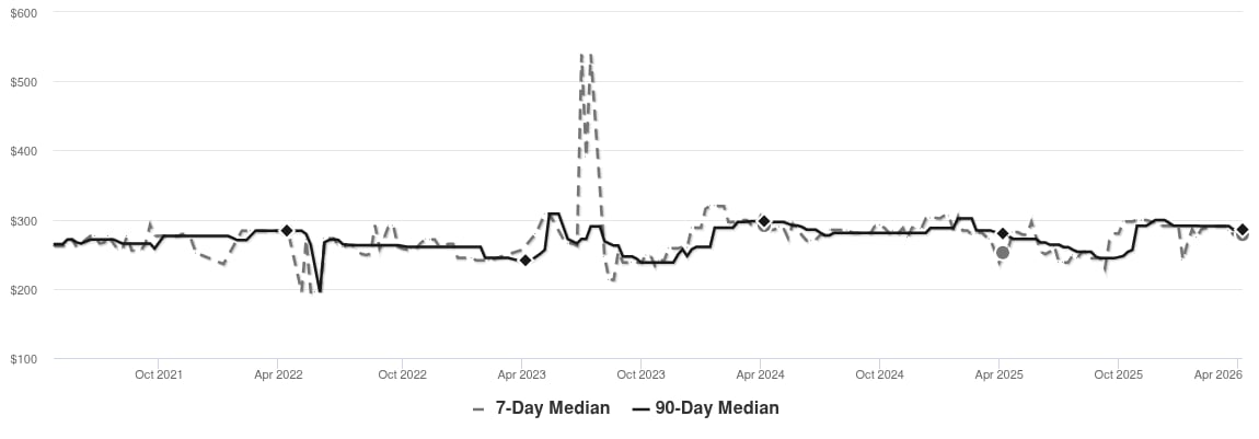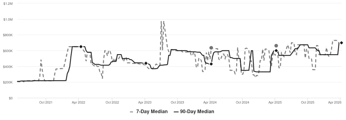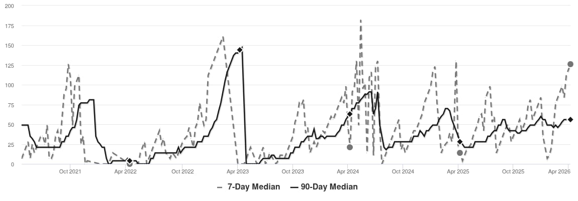 The Market Action Index has been trending lower for several weeks while prices have remained relatively stable. If inventory continues to grow relative to demand however, it is likely that we will see downward pressure on pricing.