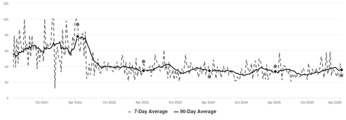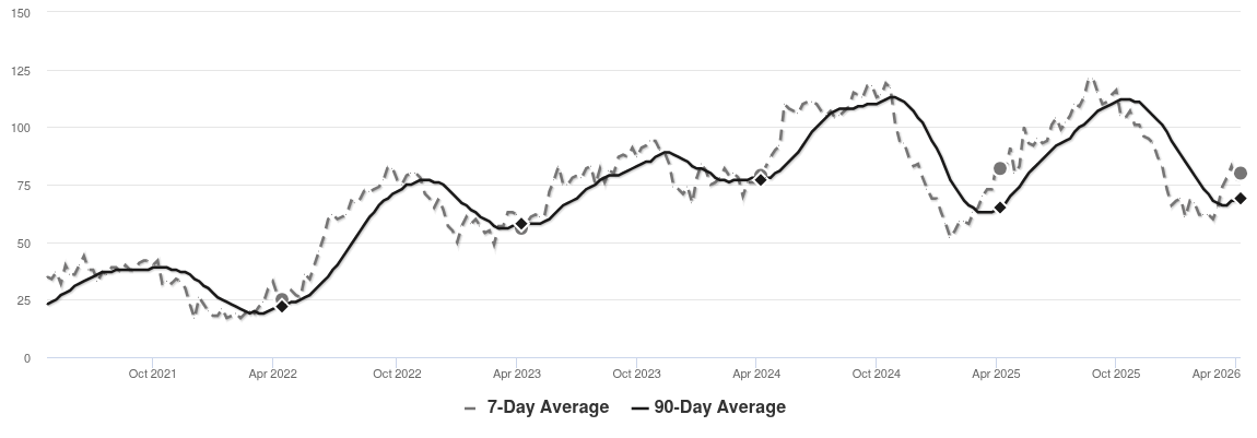 We continue to see prices in this zip code at a plateau even though prices dipped this week. Look for a persistent change in the Market Action Index (up or down) before we see prices significantly deviate from these levels.
